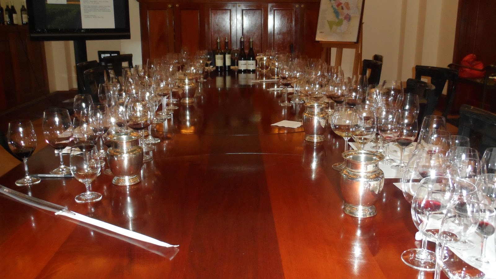 Post-wine-tasting scene at Phelps — that’s a lot of glasses to wash!