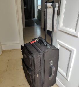 It wasn’t early at all.  The bag in fact made it to the island around April 26 but only delivered to our room on May 5.  With major custom delays (Covid strikes again), copious emails resulted between the shipper, the resort and me.  In the end, in our room there was a sight for sore eyes and a source of clean clothes.