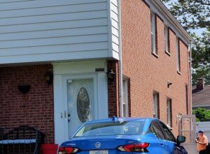 Two other significant get-together’s happened, the first strictly by chance.  While showing me the various places he lived, the hubby invoked “nothing ventured; nothing gained” and knocked on the door of a duplex his family (parents and two brothers) lived in for three years — more than 60 years ago.  A very nice woman graciously invited us in to take a look — she lives there with her two sons.  Her mother has owned the duplex for 30 years and occupies the lower level.  She commented what great schools there are in Shaker Heights, then and now.  The duplex will pass to her when the time comes, hopefully many years from now.  Below, as Bruce knocks on the door.